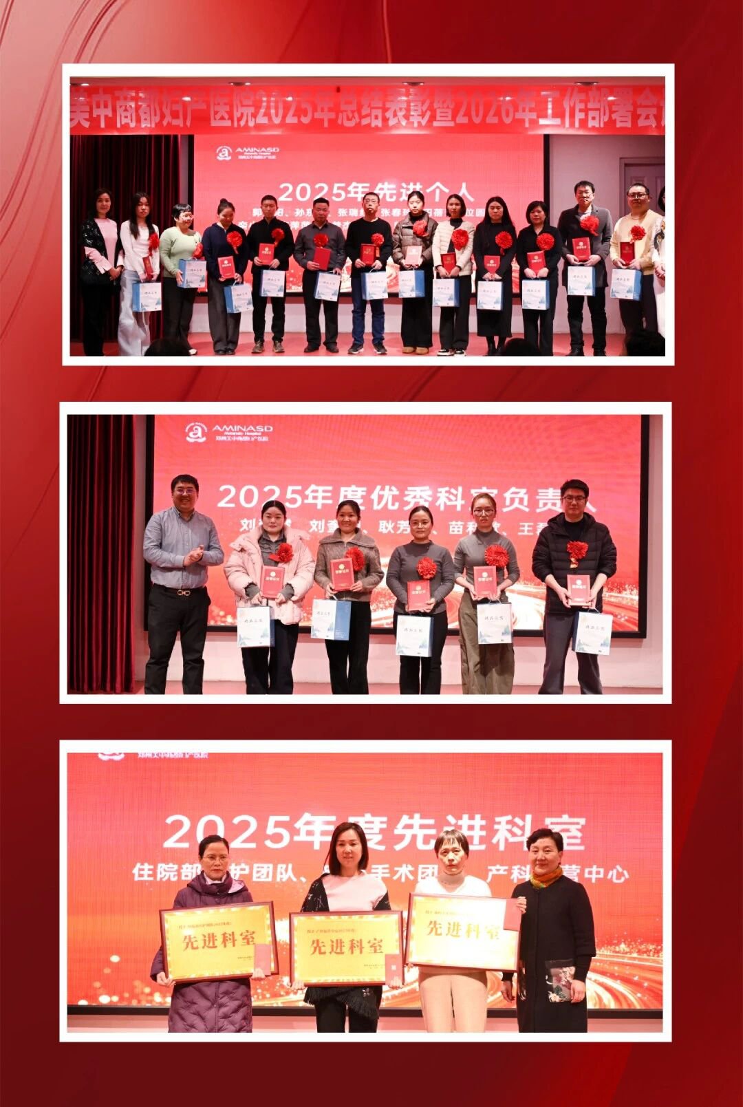 2026年2月6日,郑州美中商都妇产医院隆重召开2025年度总结表彰暨2026年工作部署会议。医院董事长苗修生先生,党支部书记、院长刘瑞红女士,产科学术带头人卢爱妮教授等院领导与全体员工齐聚一堂,共同回顾过去一年的奋斗历程,表彰先进,擘画新年发展蓝图。